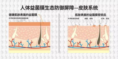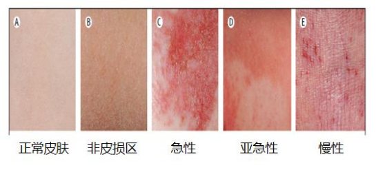 由于屏障受损,皮肤表面失去了正常的保护功能而出现了皮肤水分的丢失,从而出现皮肤的干燥、脱屑; 进而造成皮肤表面的病菌和刺激物容易经过受损的皮肤屏障而进入皮肤内部,进一步引发皮肤炎症反应,出现红肿,严重的出现皮疹和渗液。